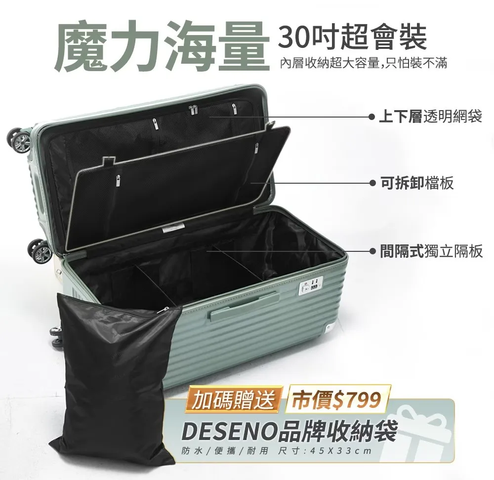 雙11限時優惠Deseno 笛森諾 尊爵魔力胖胖箱拉鍊款 30吋(多色任選)