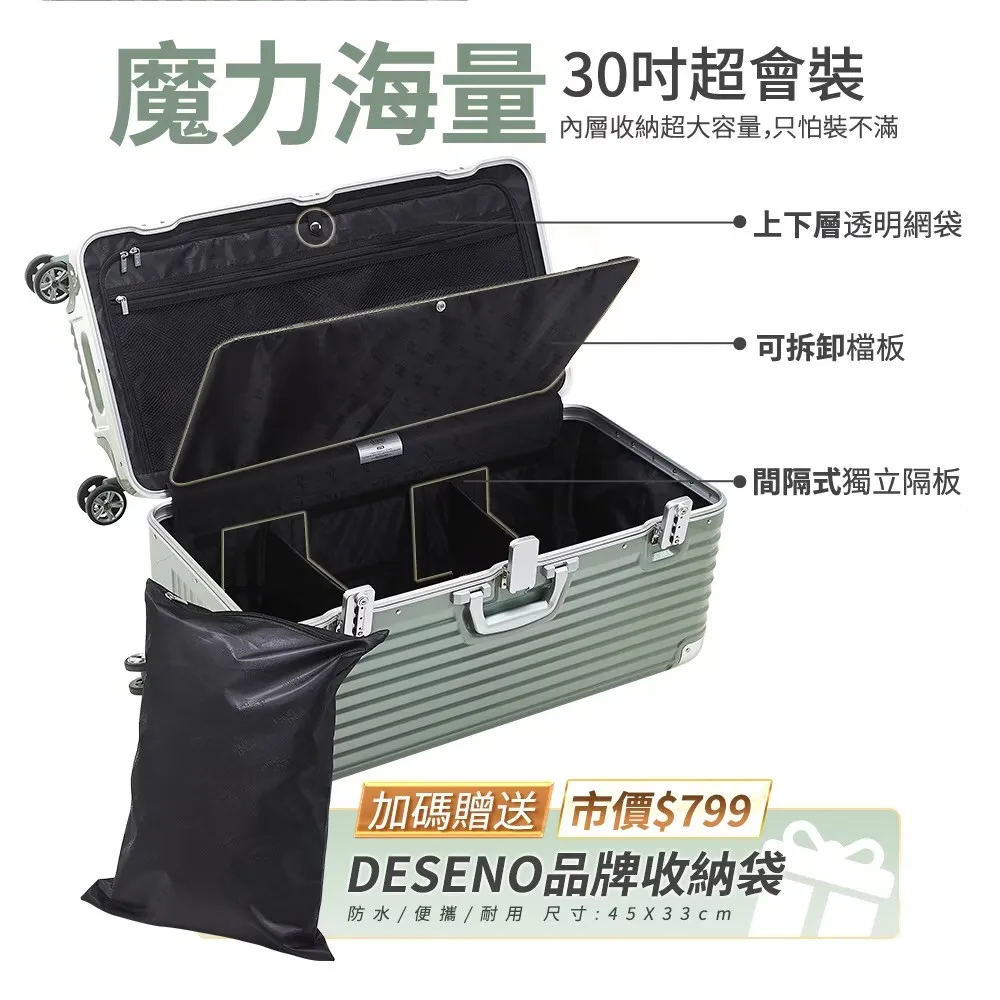 雙11限時優惠Deseno 笛森諾 尊爵魔力胖胖箱鋁框款 30吋(酪梨綠、松洋綠)